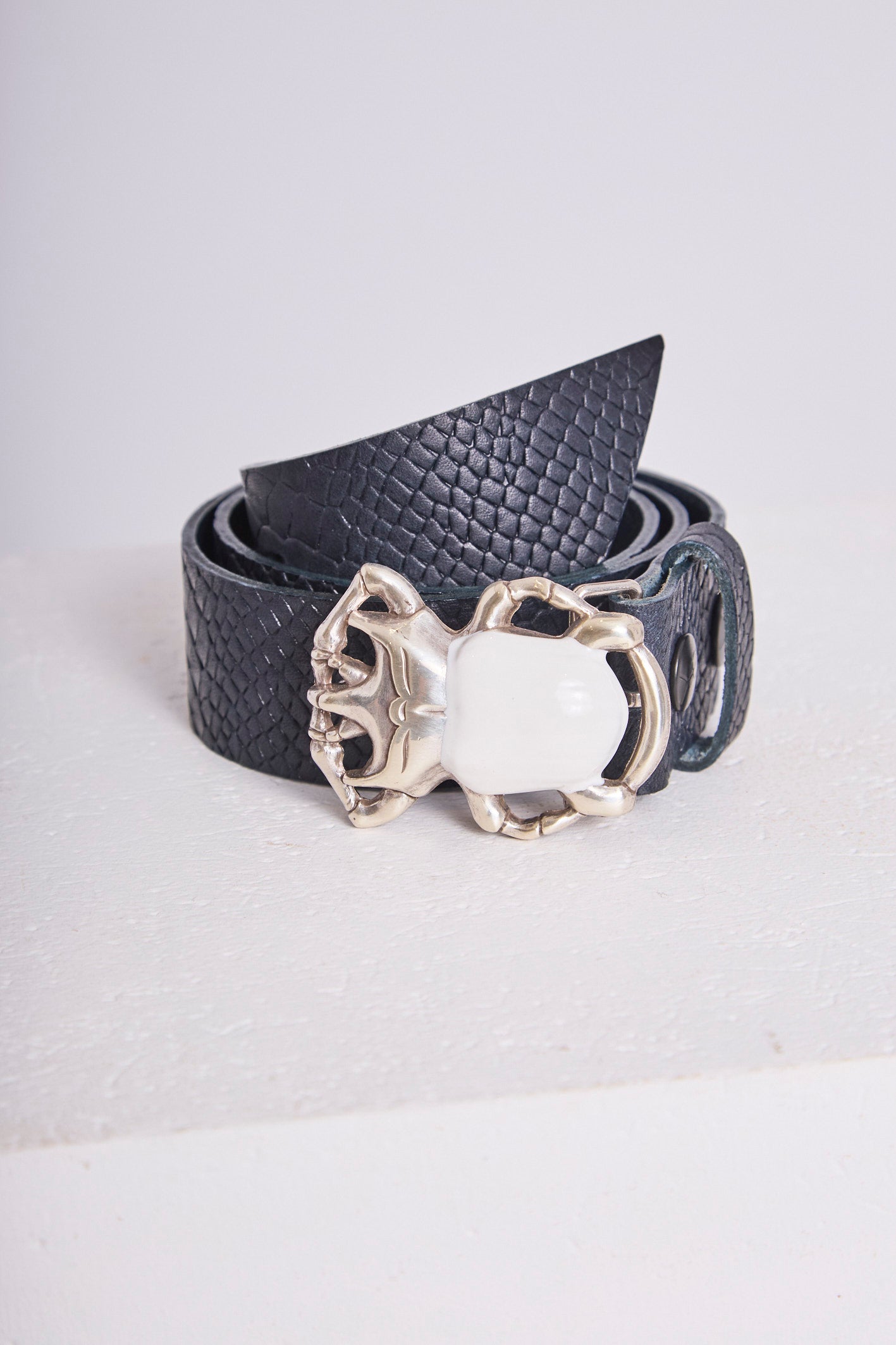 - Ceinture en cuir bleu nuit effet python