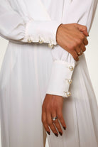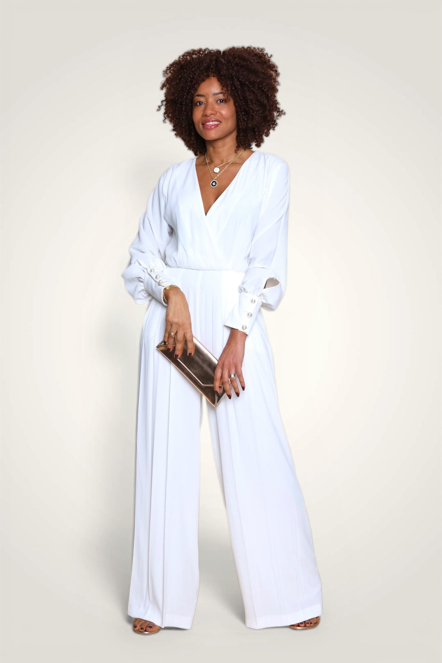 - Détails : Gros boutons perle aux poignets et au dos