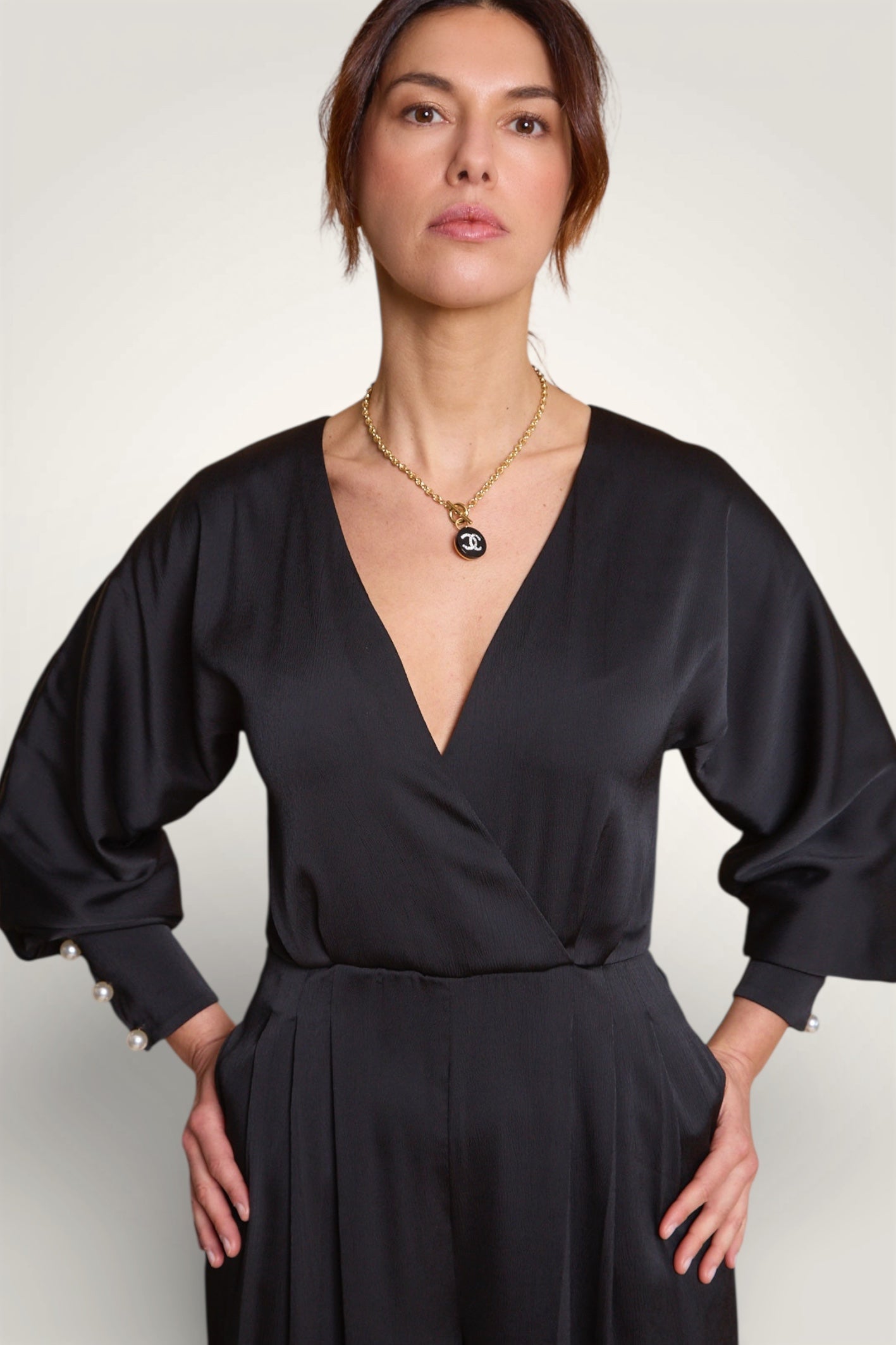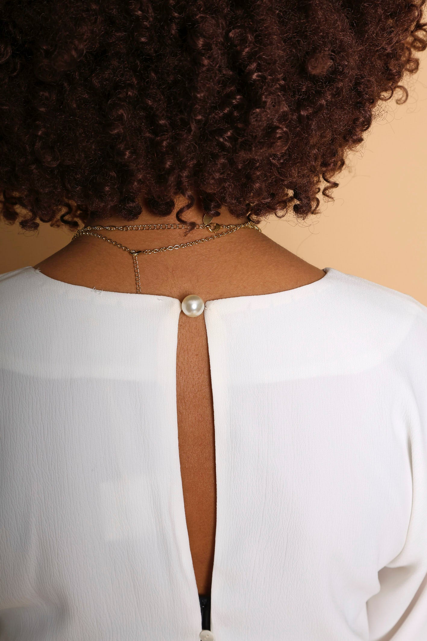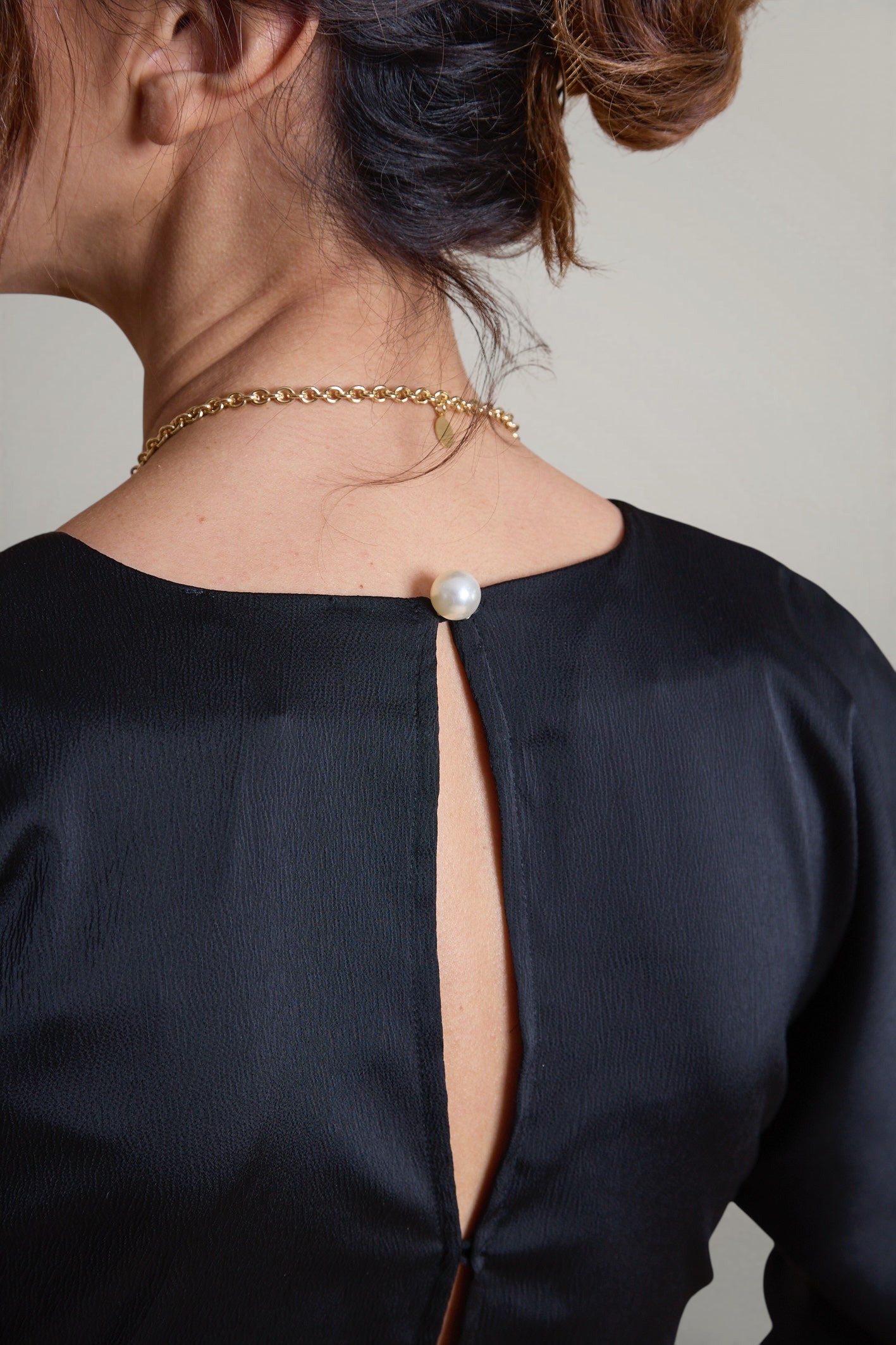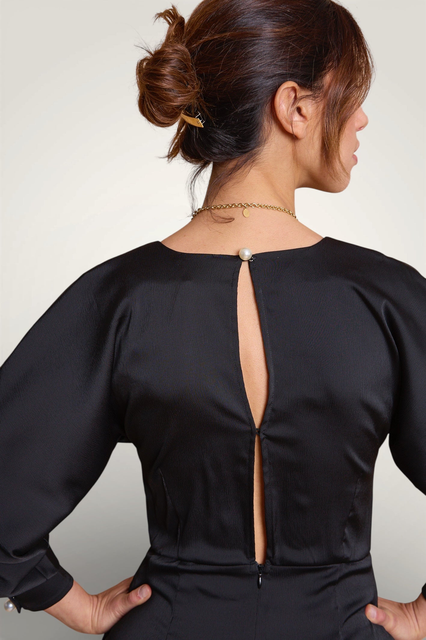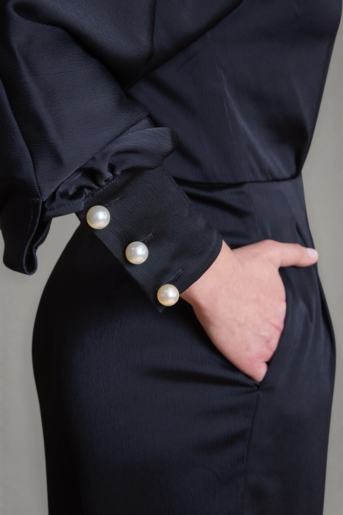- Détails : Gros boutons perle aux poignets et au dos