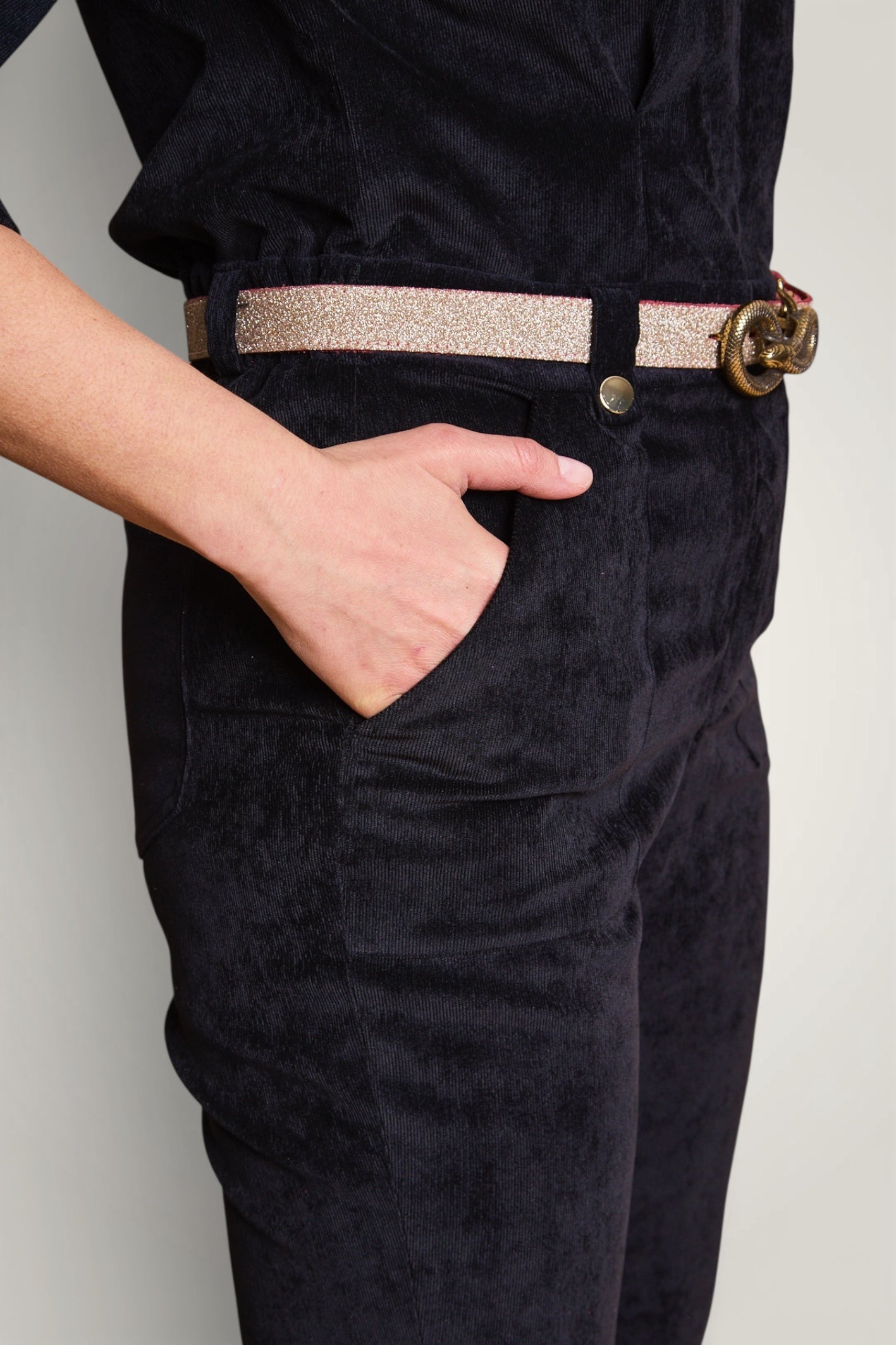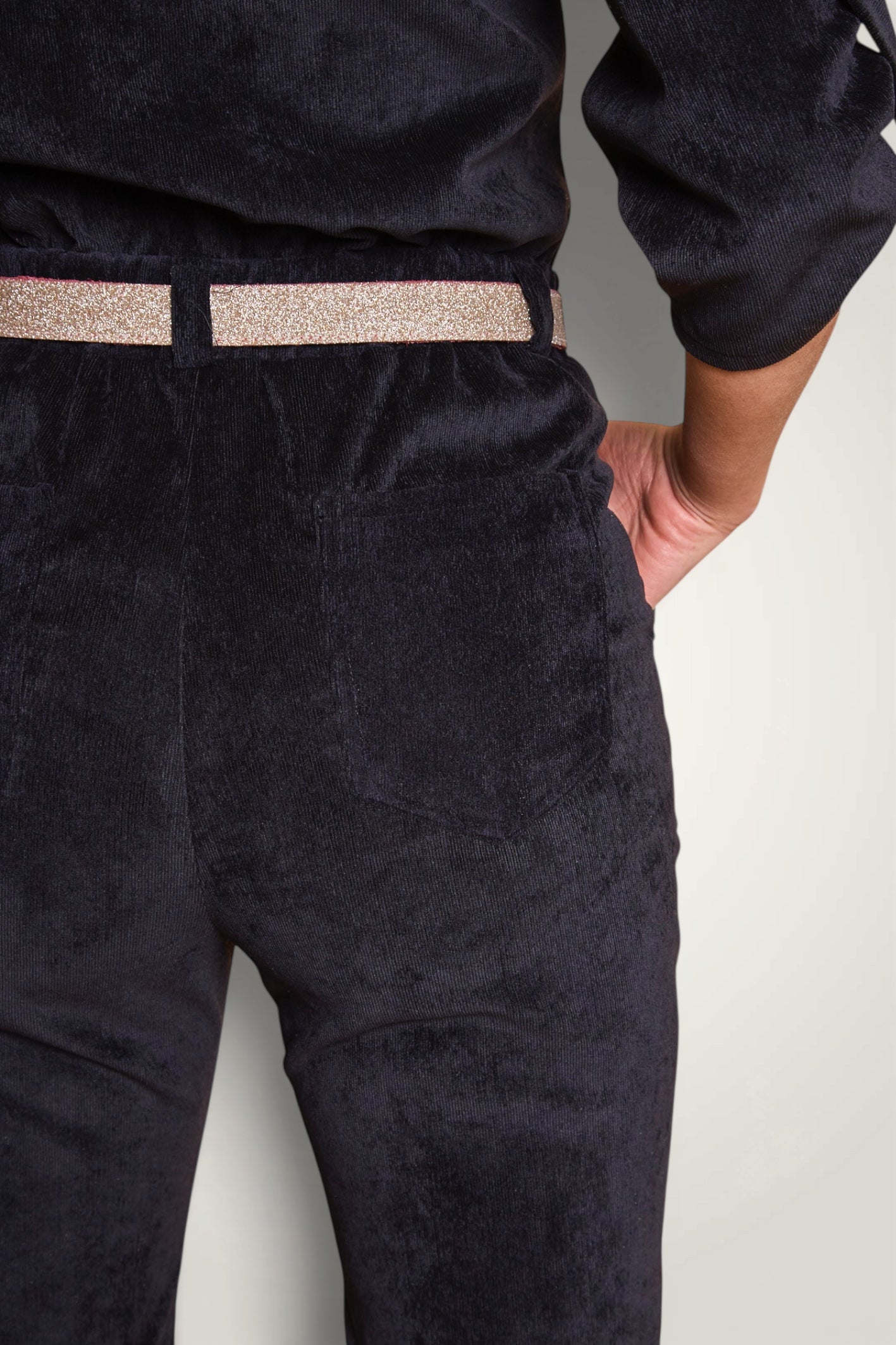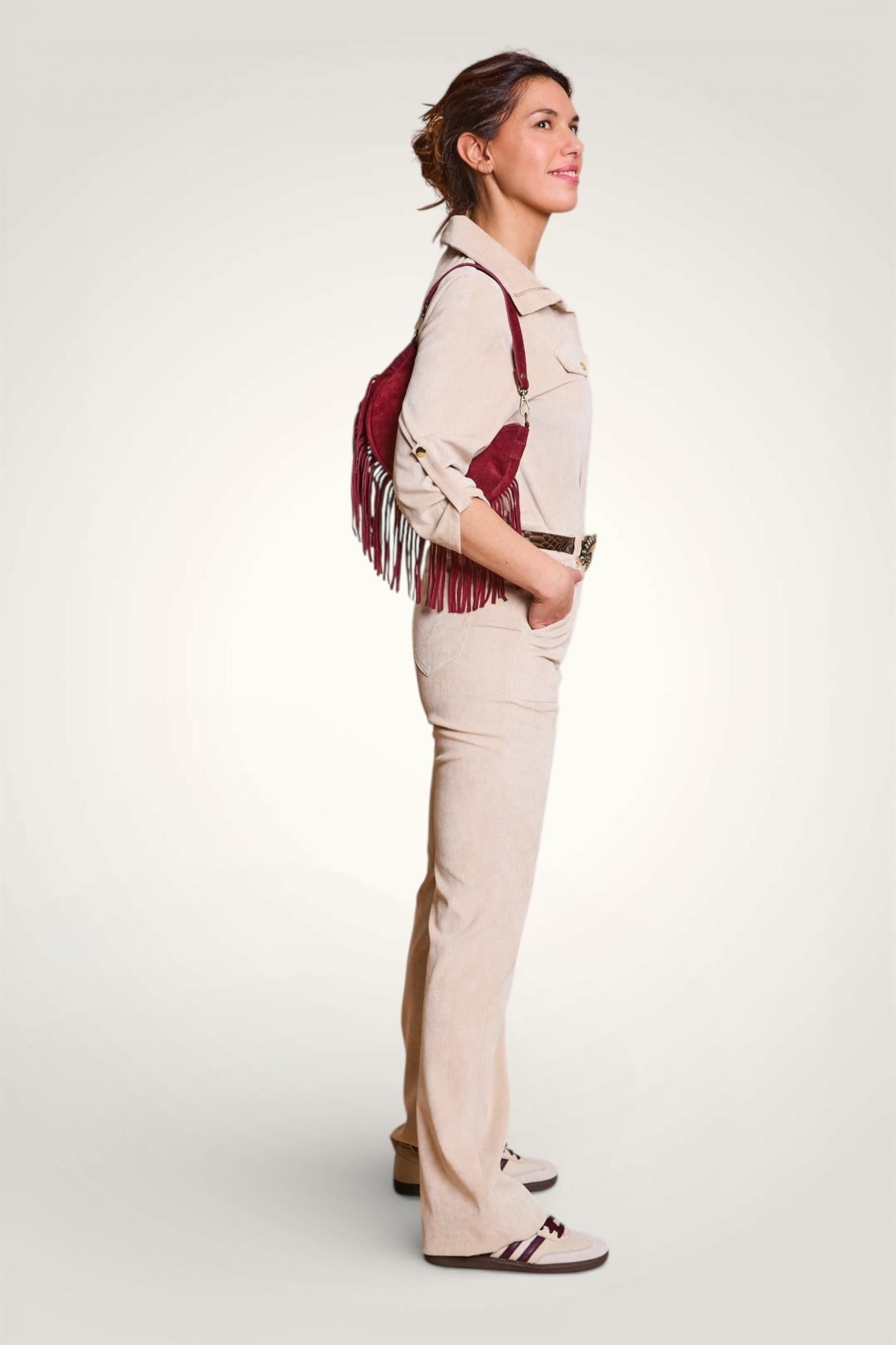 - Matière : Velours milleraies stretch (3% élasthane).