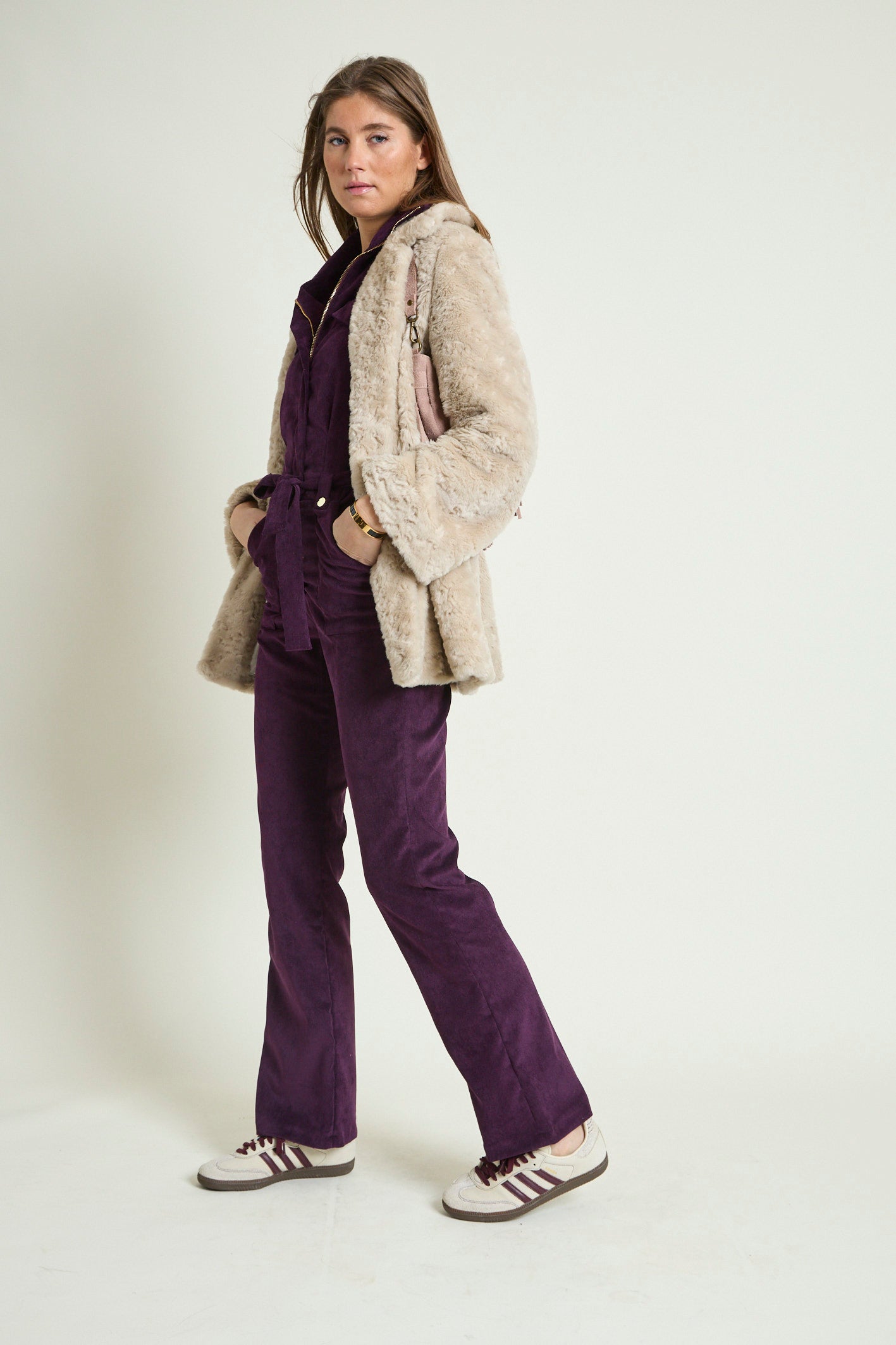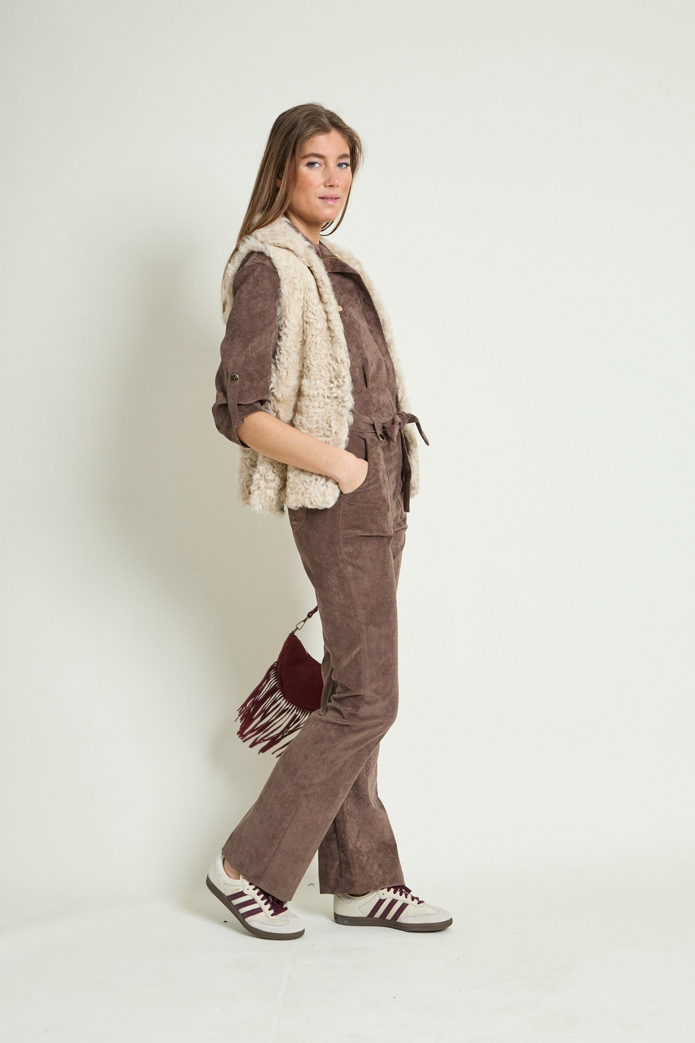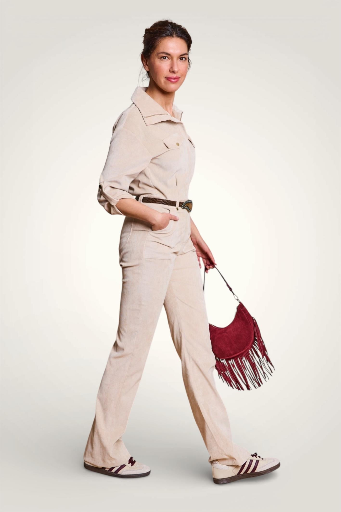- Matière : Velours milleraies stretch (3% élasthane).