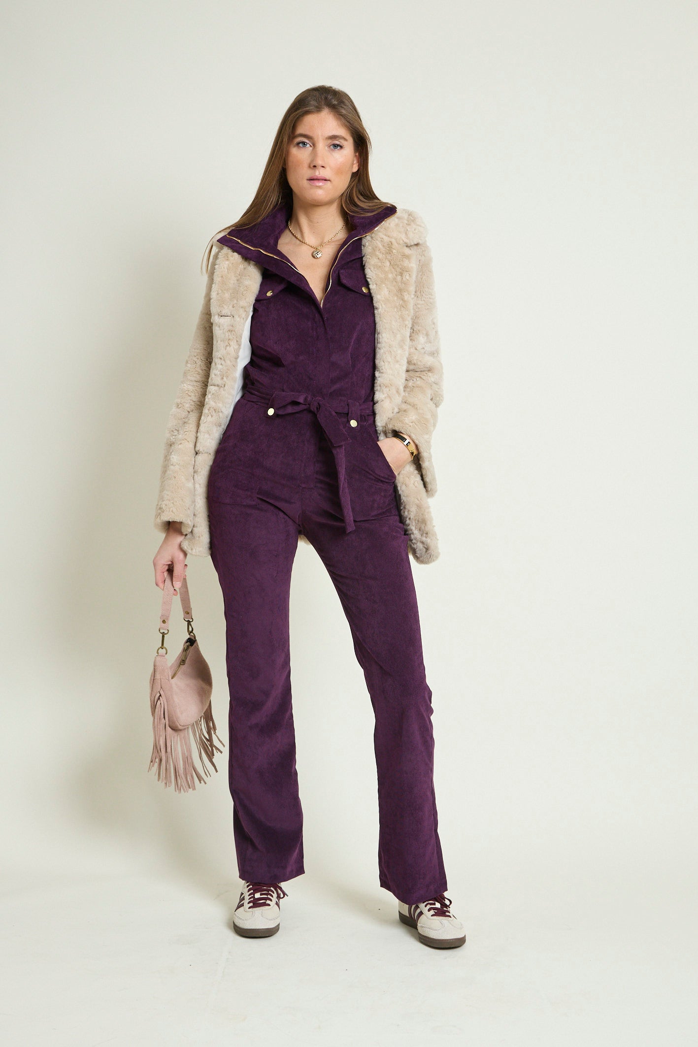La combi "OSLO" est la combi dont vous ne saurez plus vous passer ! En velours milleraies stretch, et d’un confort absolu, elle est un intemporel de notre collection streetwear. Disponible dans 7 coloris, elle vous assurera une allure décontractée et un look assuré. Ses détails de pression dorées et son gros zip doré lui confèrent un look streetwear ultra chic.