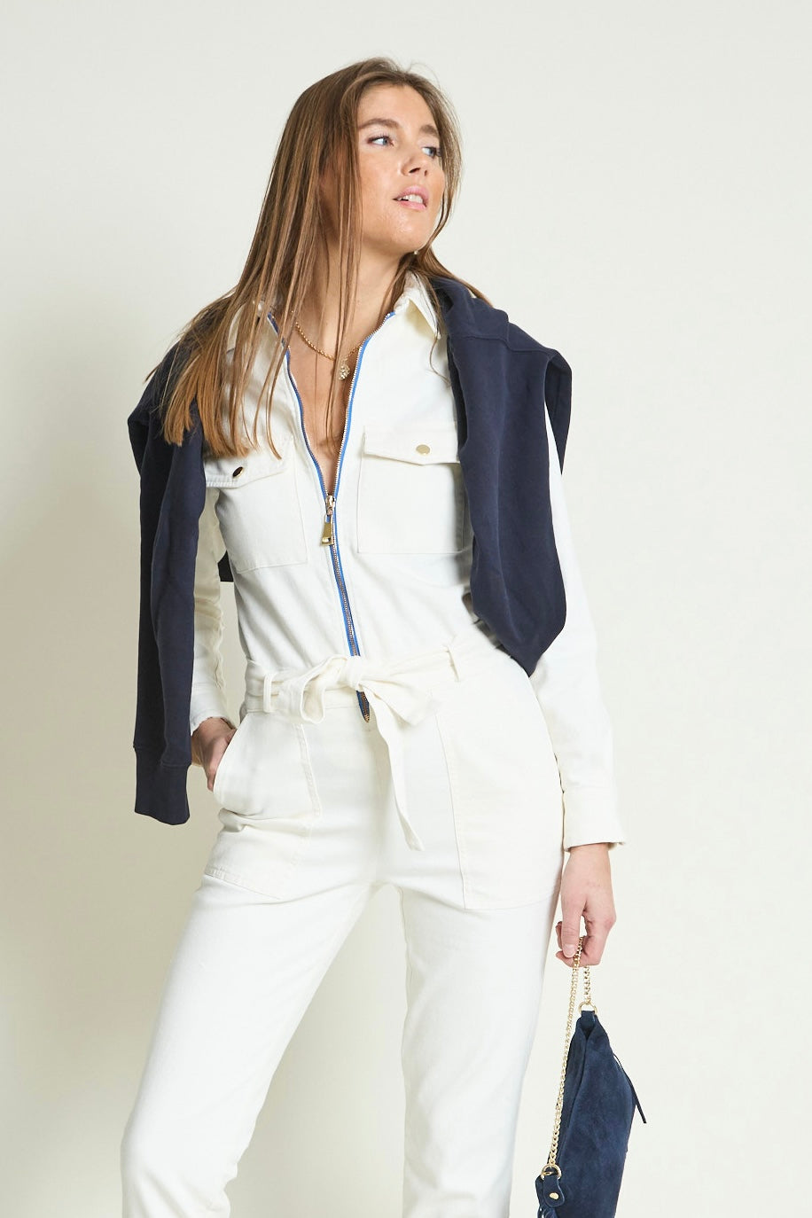 Vous allez adorer la combi “CHICAGO” en denim écru, avec son zip et ses détails contrastés. Celle que tout le monde s’arrache ! Ce qui est certain c’est que vous ne passerez pas inaperçue ! On craque pour ses détails contrastés et sa broderie sur la poche dos. Pour une silhouette élancée, et un style affirmé.