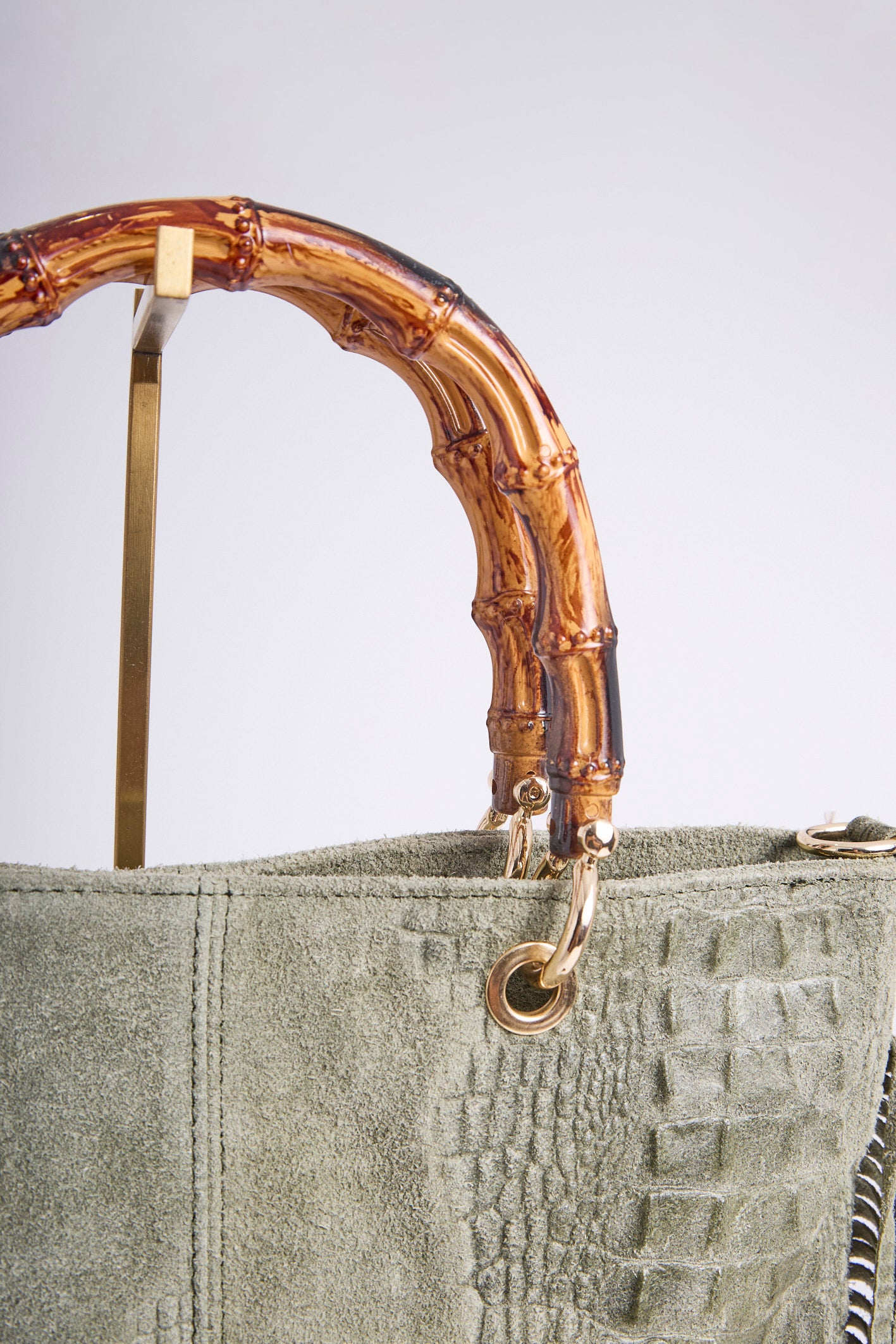 Sa anse en bambou et les finitions dorées apportent une touche à la fois naturelle et luxueuse.
