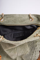 Ce sac au style bohème chic se distingue par son mélange harmonieux de matières et de textures.