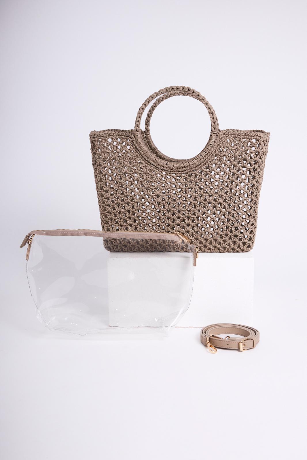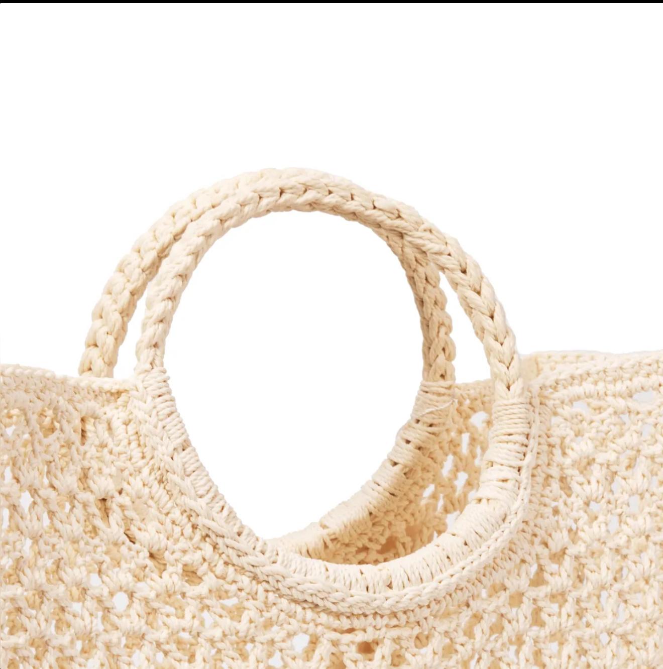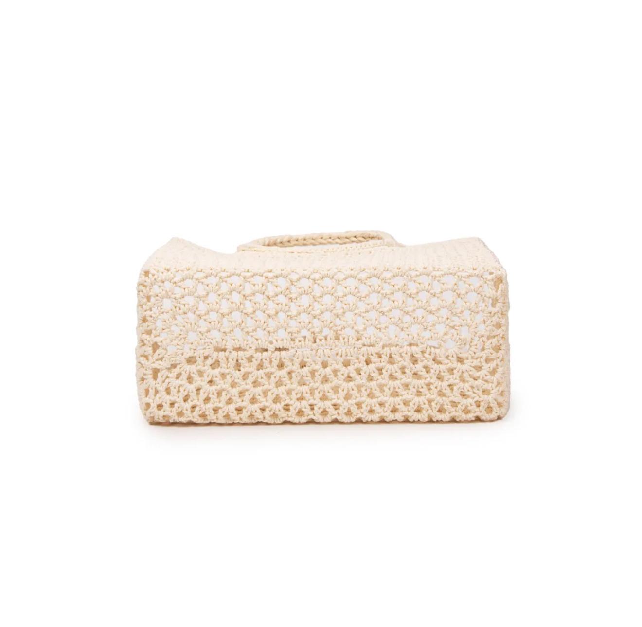 Craquez pour notre sac en crochet esprit Tropézien que vous emmènerez partout. Sa forme carrée moderne et ses anses rondes apportent un look dynamique à la silhouette.