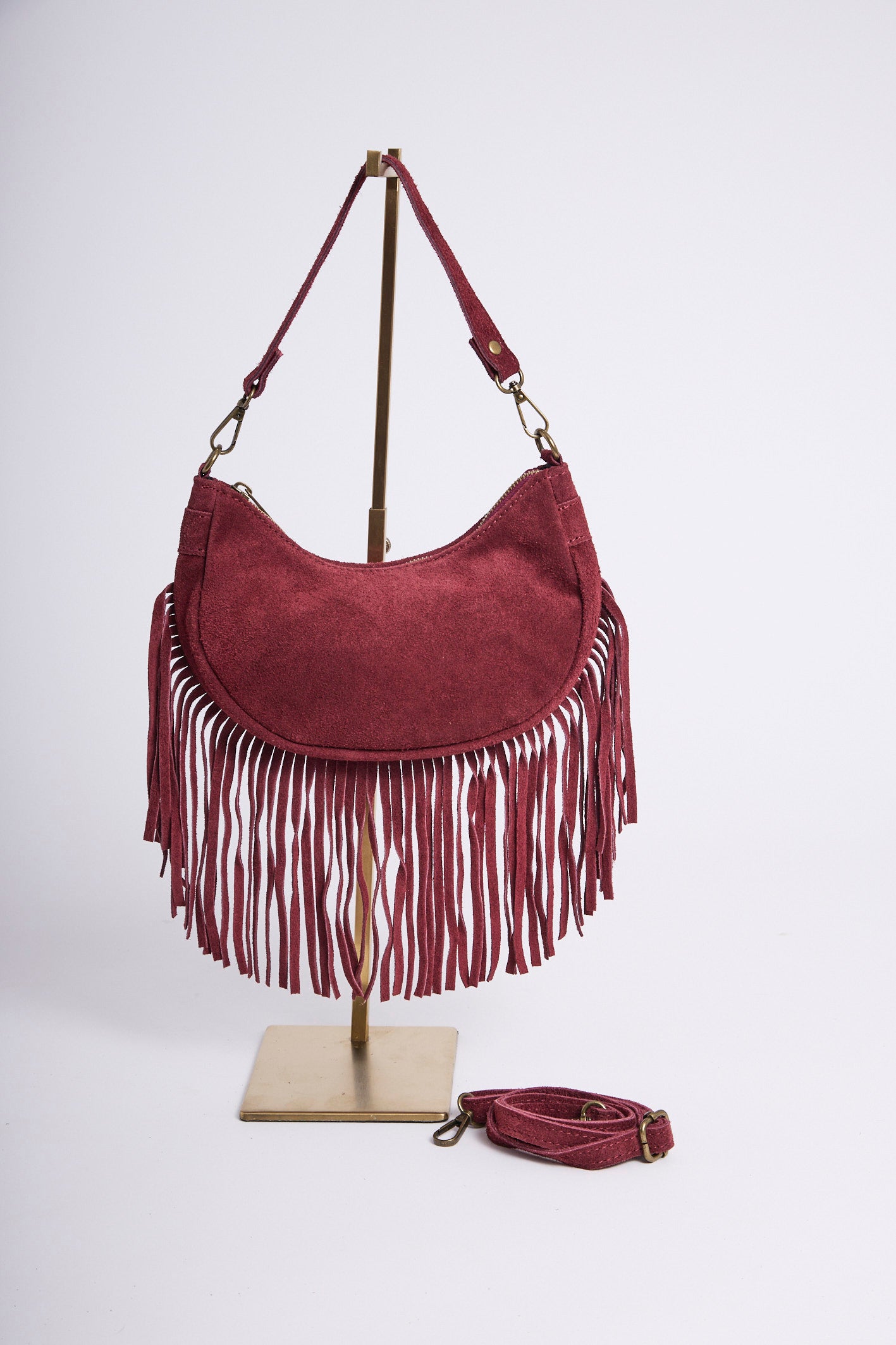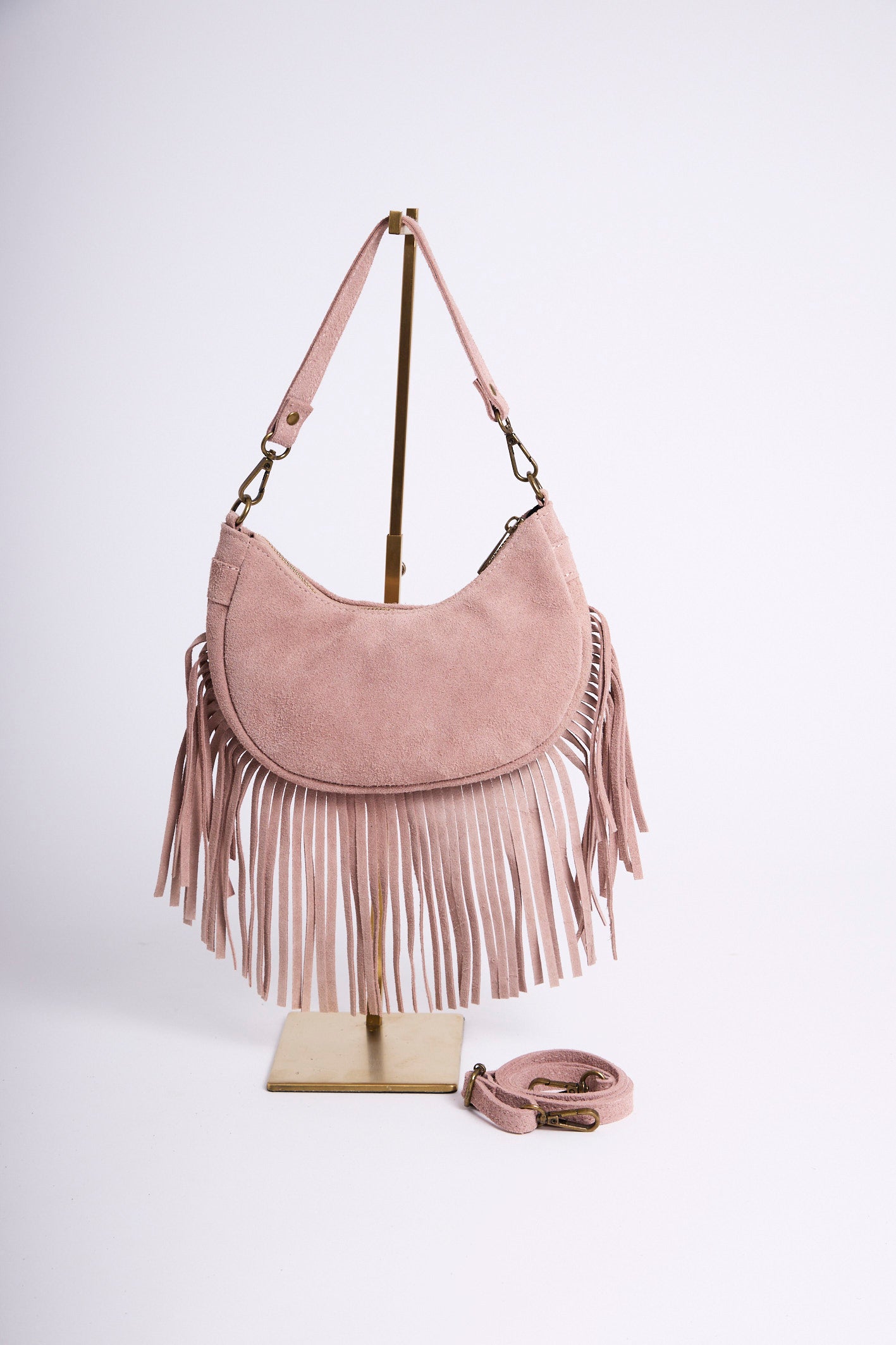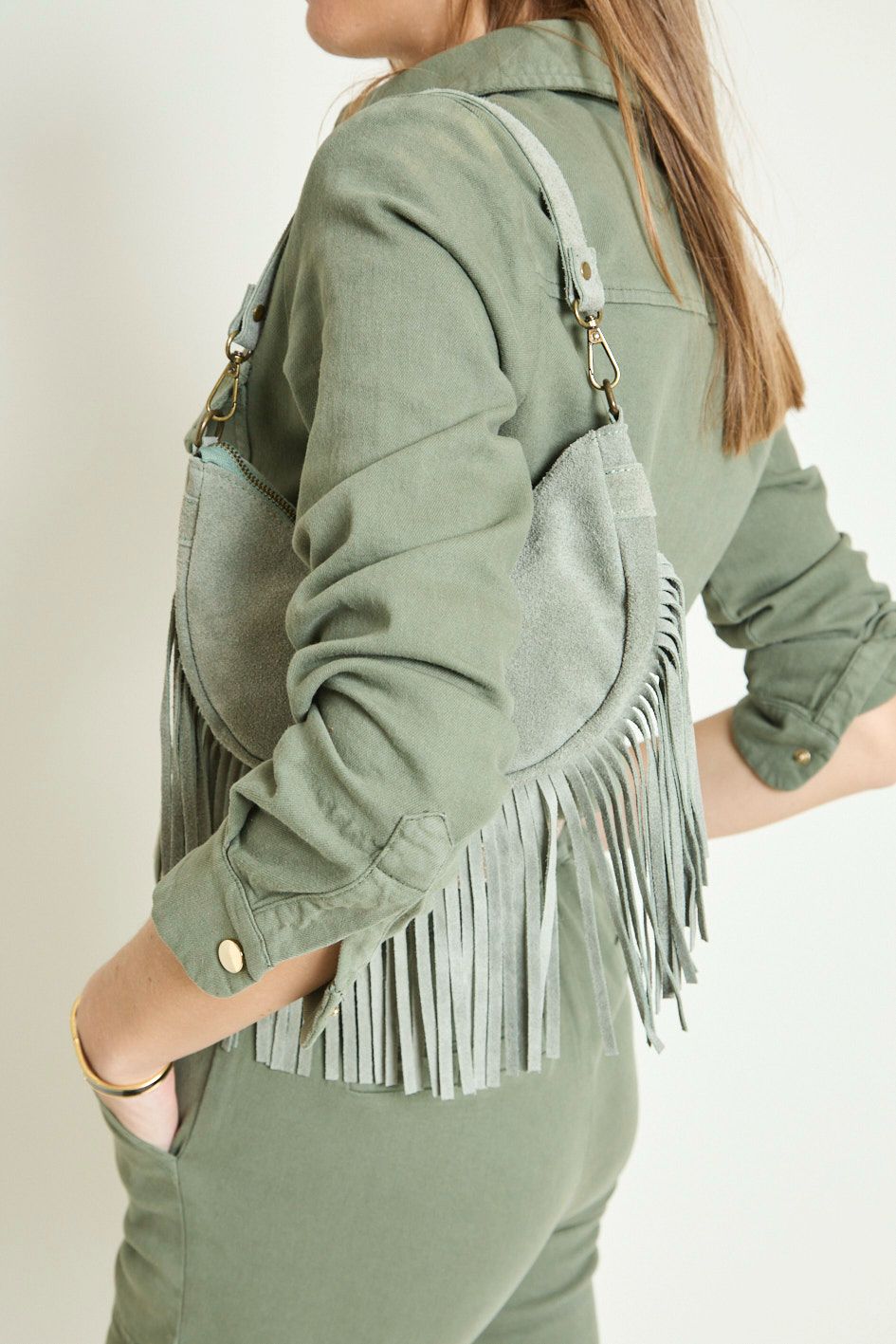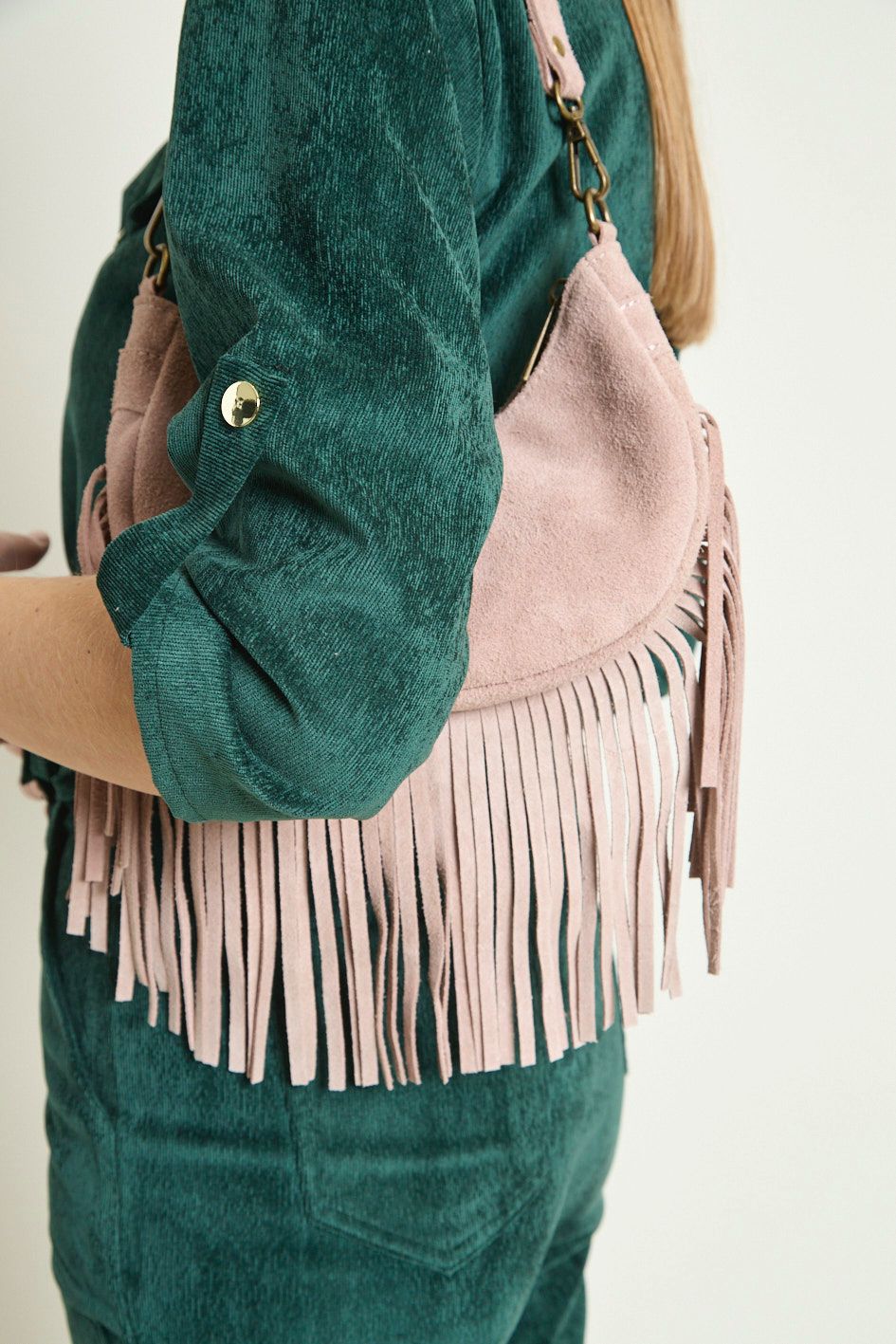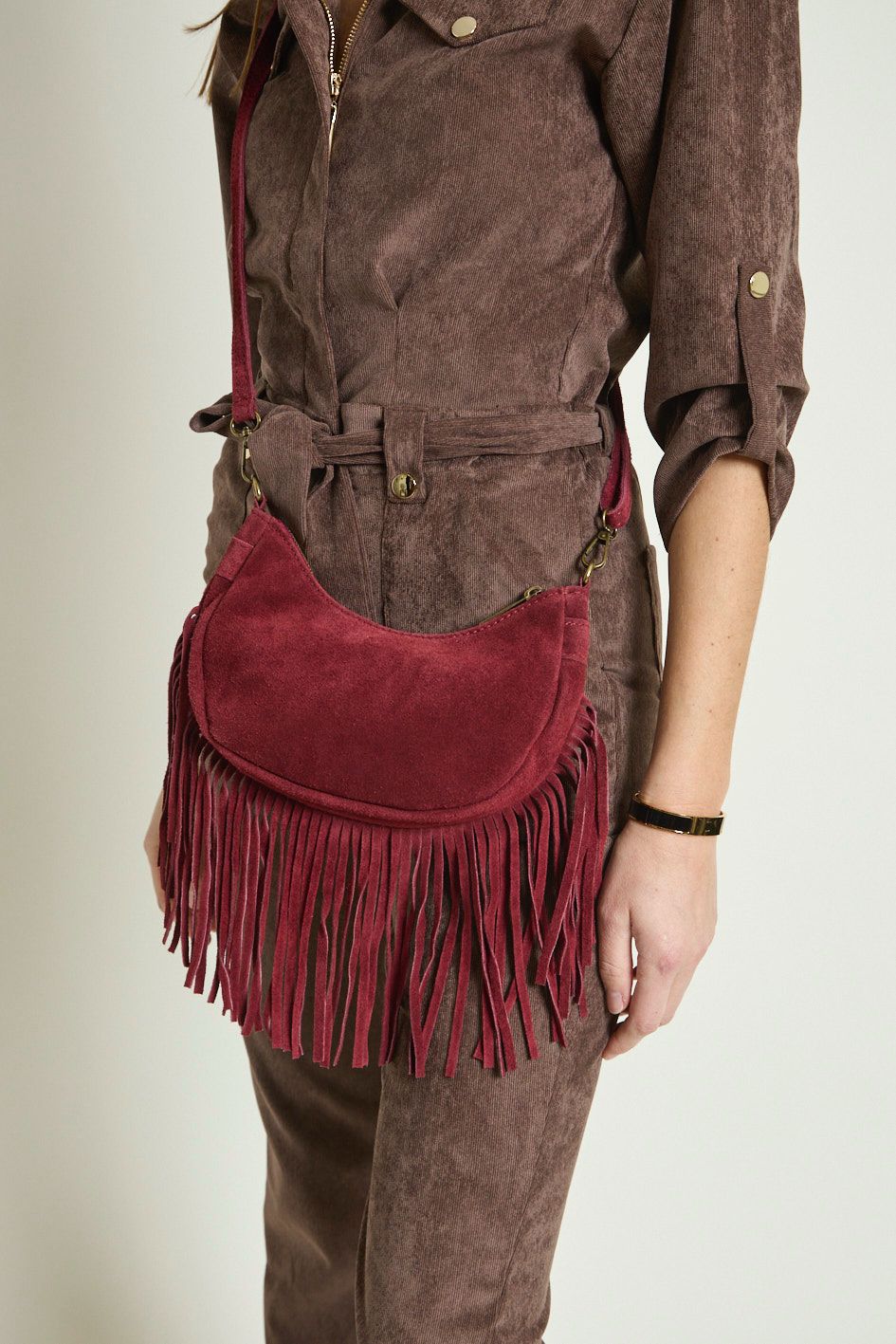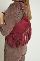 Sac en cuir suédé à longues franges, un modèle bohème-chic qui apporte du mouvement et du style à toutes vos tenues.