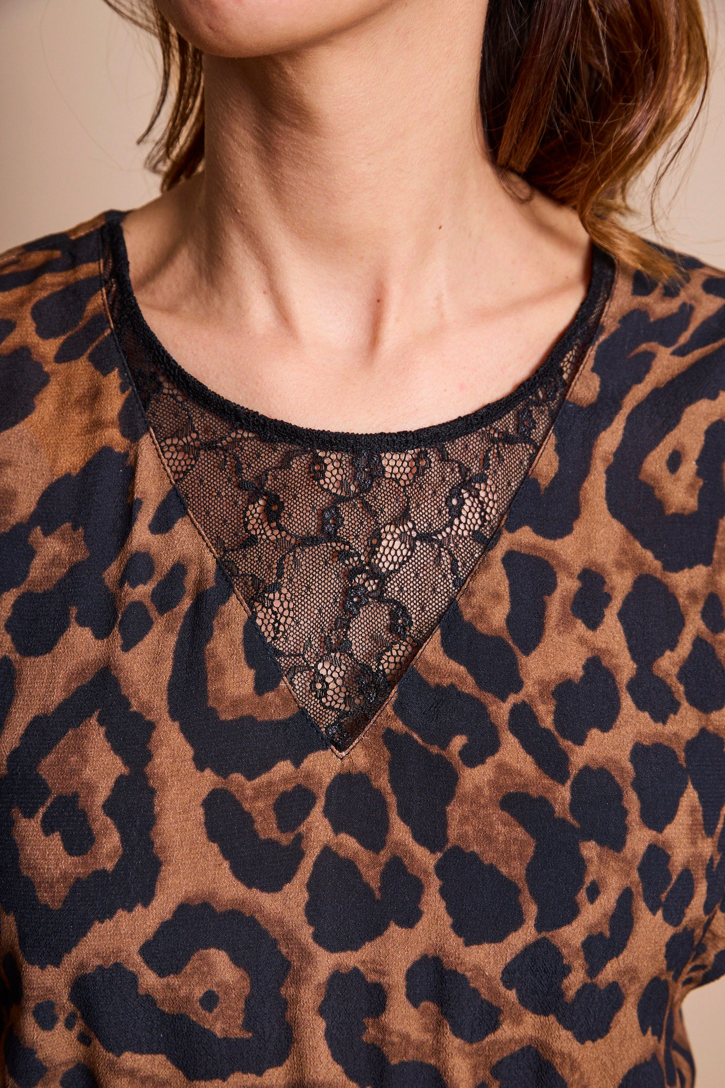 Incontournable cette saison et omniprésent lors des défilés, l’imprimé léopard est devenu un Must ! On adore la combi "MILAN". Sa matière fluide et douce, son imprimé tendance, son détail de dentelle au niveau du décolleté, sa coupe ajustée.